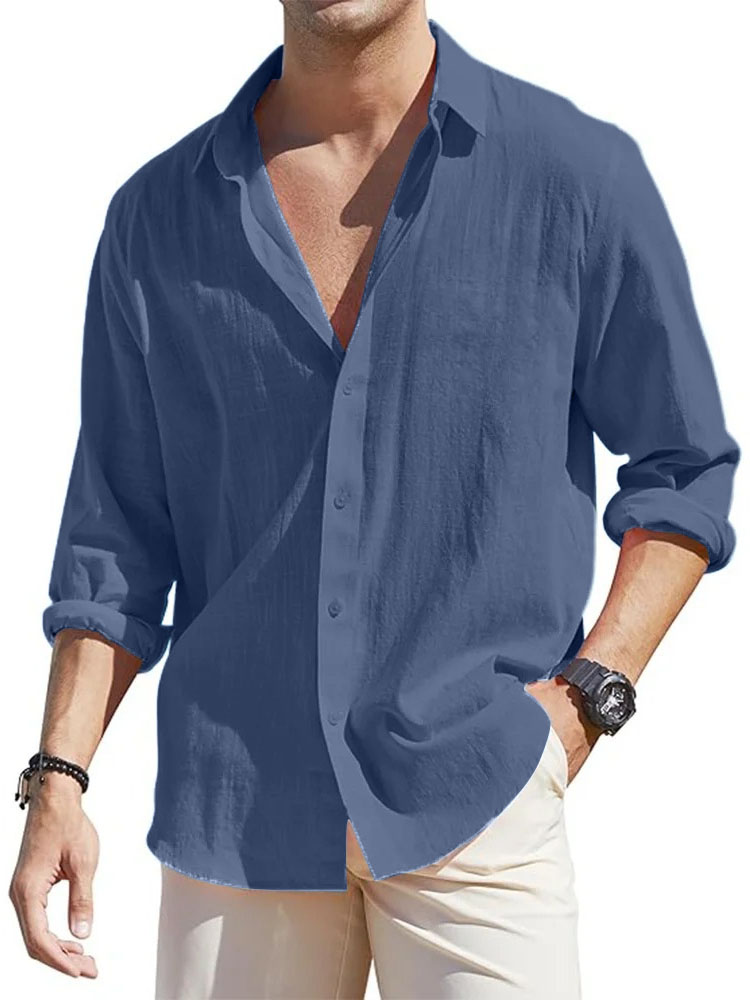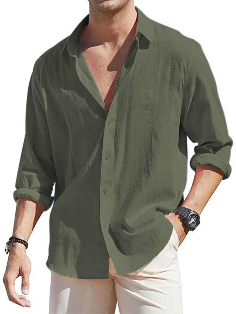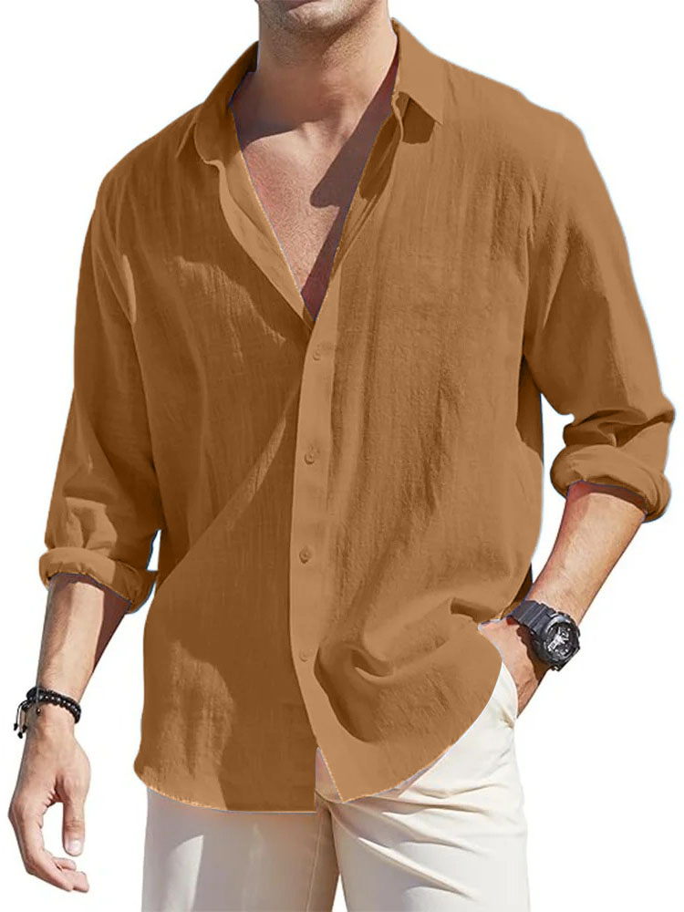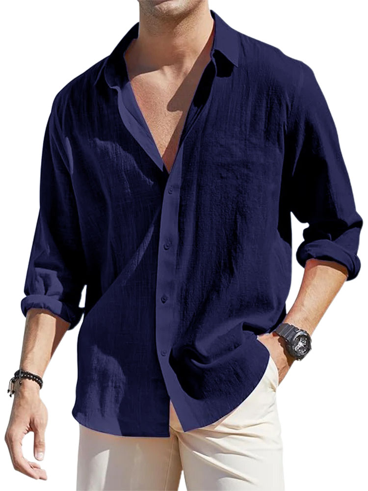 Men's Casual Loose Basic Cotton And Linen Long-sleeved Shirt