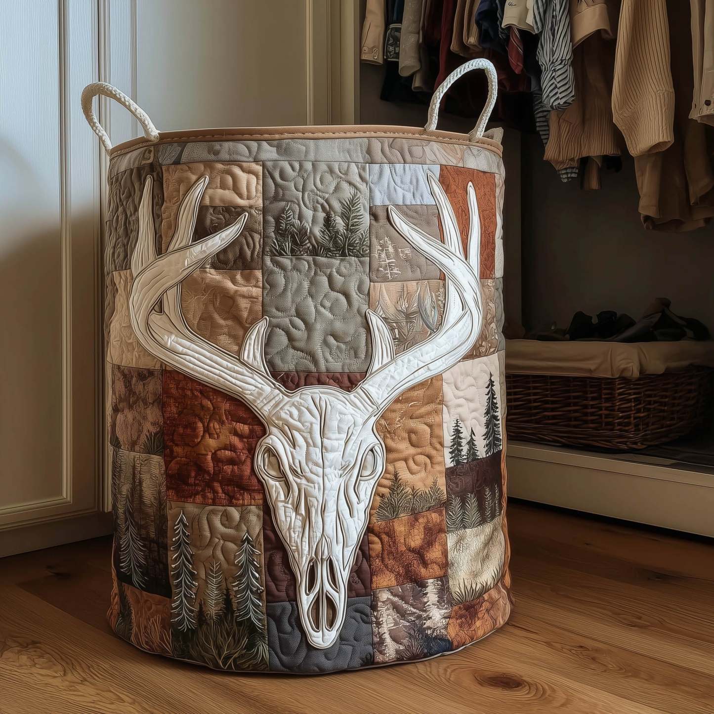 Rustic Antler Quilted Laundry Basket GFTONT5954