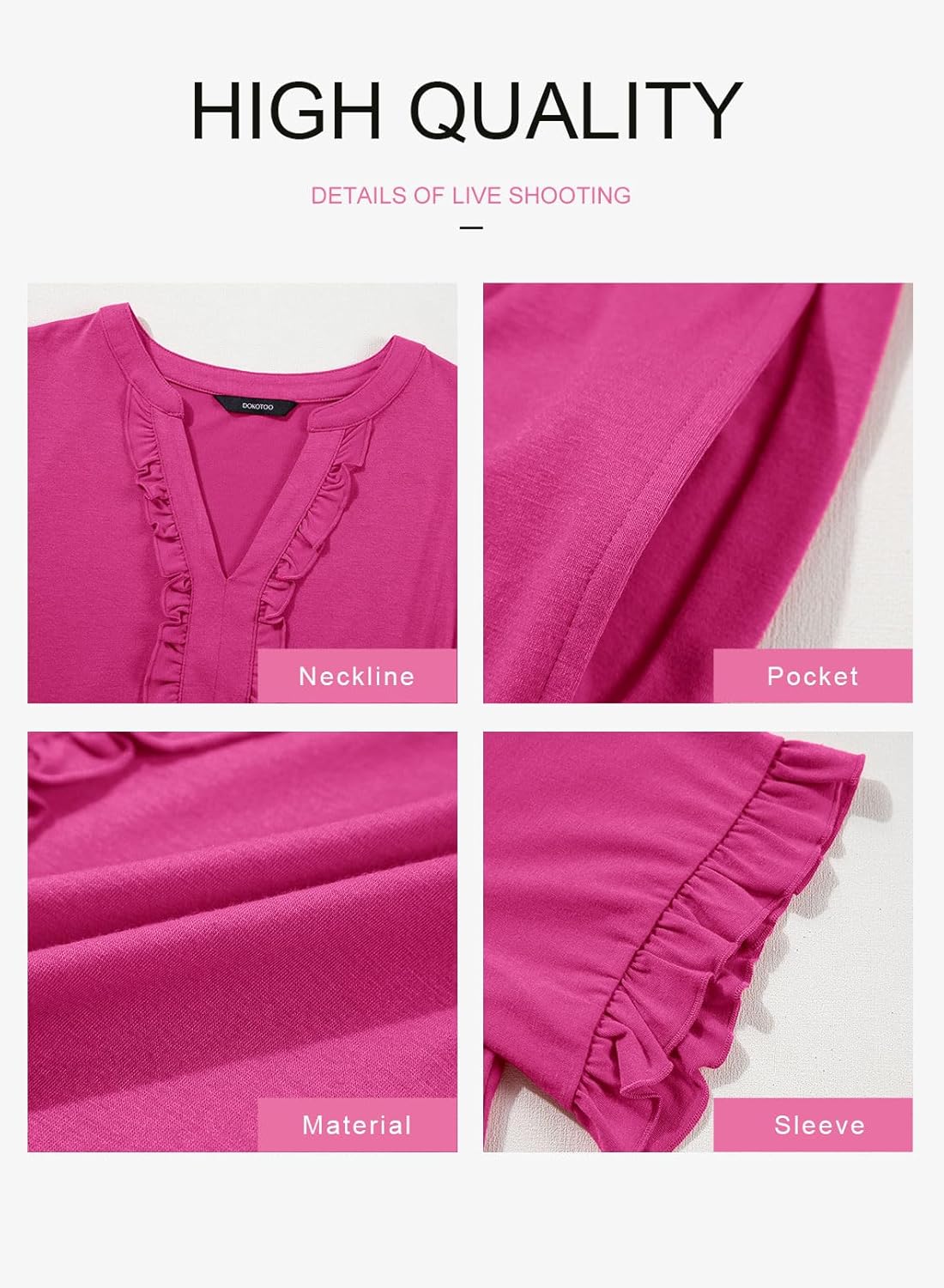 Womens Dresses 2025 Summer Spring V Neck Short Sleeve Casual A Line Flowy Swing Shift Dress Mini Dress
